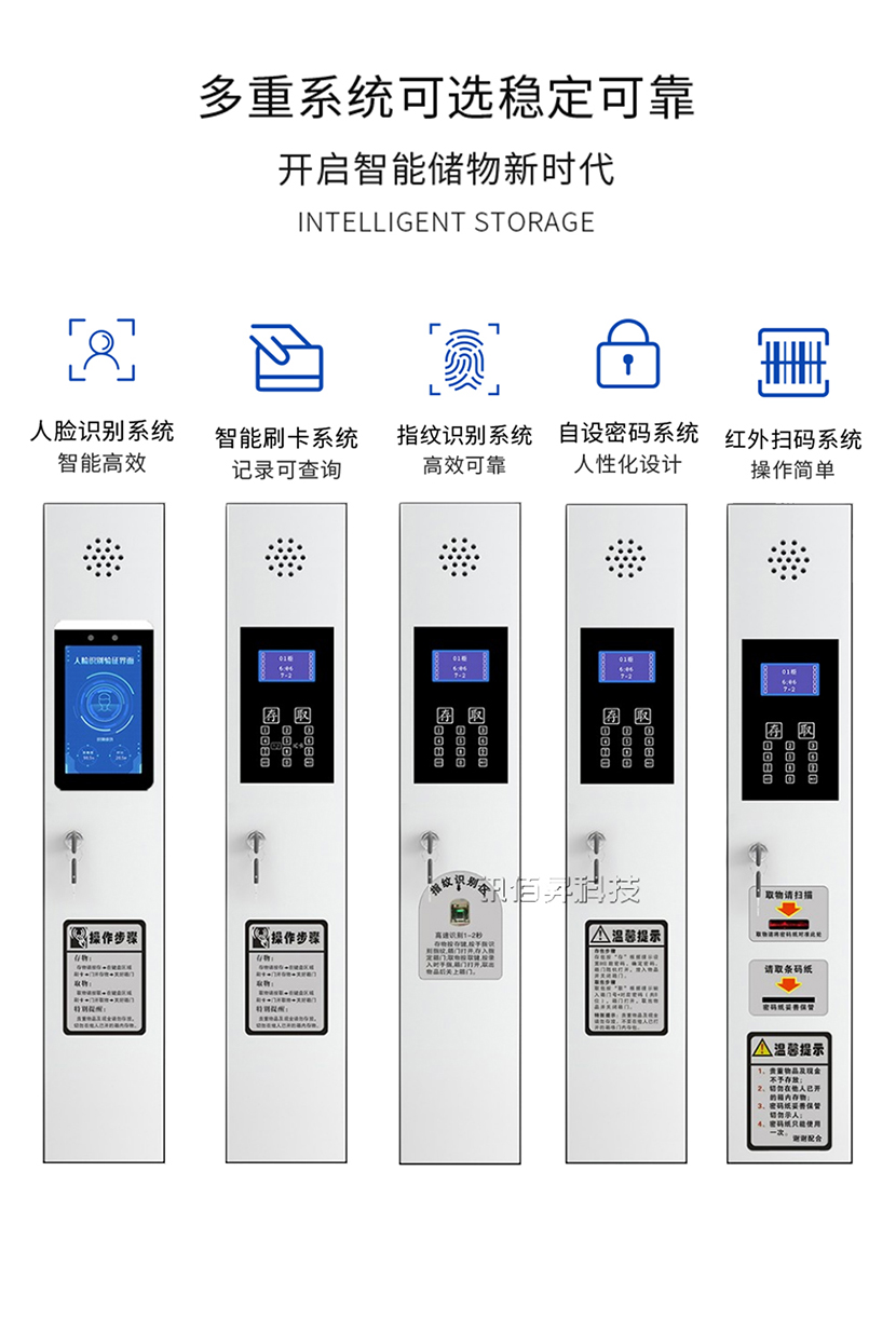智能電子共享寄存柜是一款采用人臉/刷卡/自設密碼等多重識別技術進行寄存柜管理共享存儲柜產品,可以用于企事業單位的文件檔案的保管,也可以用于工廠、機關、醫院等行業的員工更衣柜,以及手機、貴重物品配件、儀器的存儲。可廣泛應用于超市,圖書館、酒店、會所、展覽館、游樂場、車站、碼頭、機場等客流量較大,人員流動性強的場所便民存儲服務。
