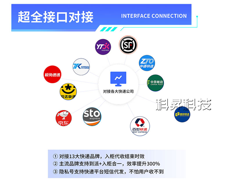 產品介紹:智能快遞柜是物流末端與智能設備相結合的自動化設施,通過自助收寄件*配送壓力,提供*自助寄存功能,依托物聯網與云計算技術優化未端物流效率。支持批量盲投、取件同時投遞、大幅提升投遞速度及格口使用率,多人同時投遞、掃碼投遞、柜體投遞、不取出直接重投、……